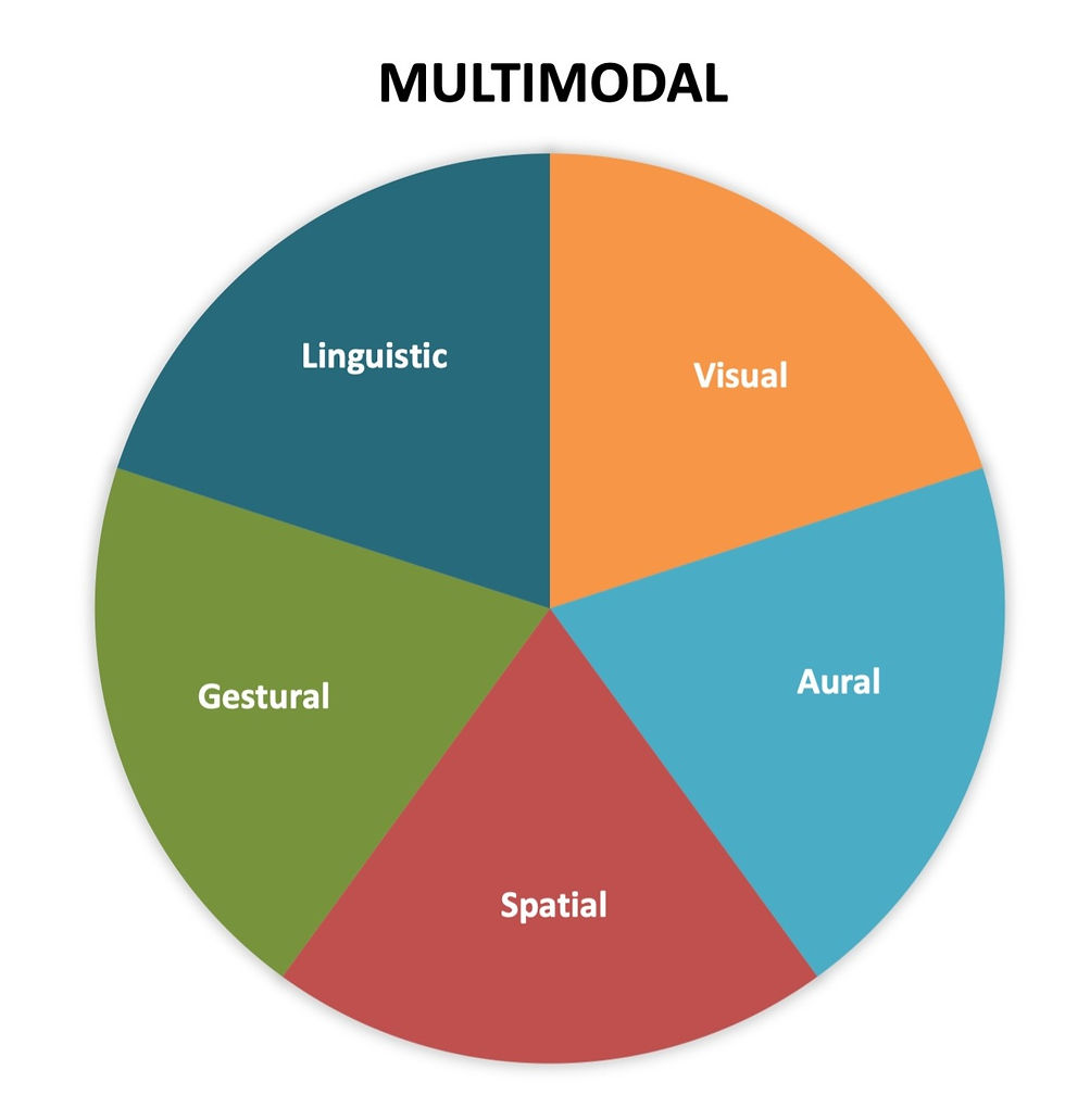 Multimodality is the incorporation of various modes— linguistic, aural, visual, gestural or spatial— in a written piece.